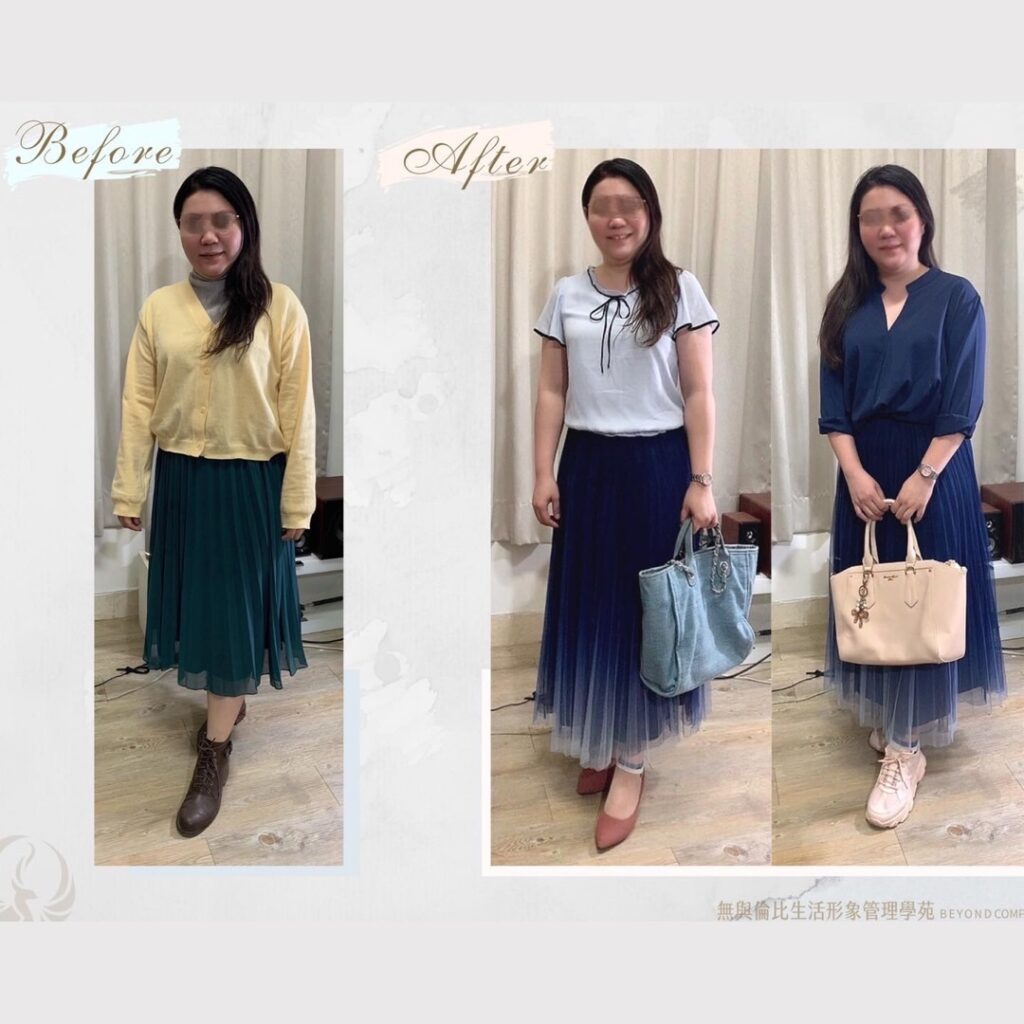 保留著我原先穿衣的喜好,慢慢的改變真的比較沒壓力,現在,氣質與氣色變得截然不同,很開心!