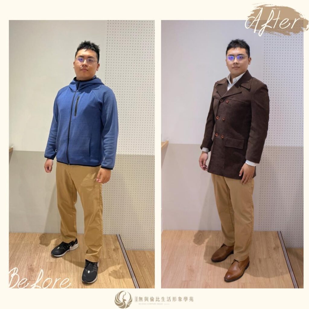 恆毅興趣是做菜、鑽研料理,在幾年前到過日本當廚師,對吃的相當重視,本身是一位草本養生產品的經銷商,他是透過表姐極力推薦來學習課程,表姐建議恆毅在年輕時將形象禮儀成為自身軟實力,用有系統方式學習穿搭,才能真正達到因地制宜的得體穿著!