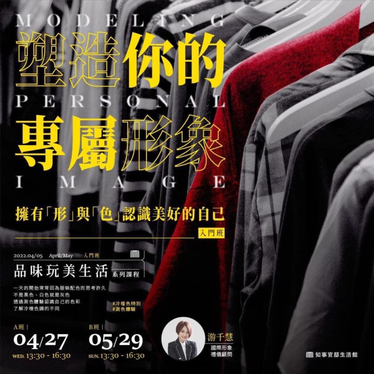 衣櫥明明上百件,遇到重要的場合永遠少一件? 週年慶來臨了,如何聰明治裝省下荷包,又能發揮職場上的個人魅力及專業表現度?透過品味玩美生活系列形象課程,你將能夠塑造專屬形象,成為生意場上的佼佼者。 –【入門課】你將學習到以下內容 #測色體驗 讓你認識場